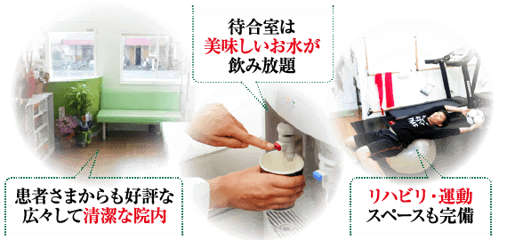 楽な服装、動きやすい服装で御来院ください。区切られた着替えのスペースもございますので、院内でお着替えいただくことも出来ます。また、着替えをお持ちでない方には着替えの貸し出しも出来ますので、受付の際にお気軽にお申し付けください。