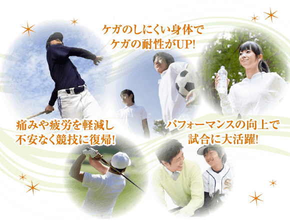 様々なスポーツの特性を考慮した適切な治療を行うことで、外傷、スポーツ障害、再発予防はもちろん、パフォーマンスアップも期待出来ます。